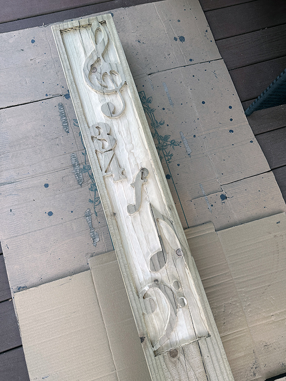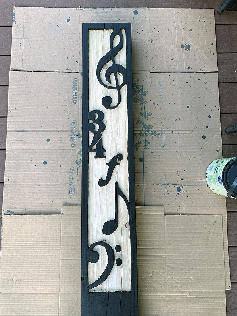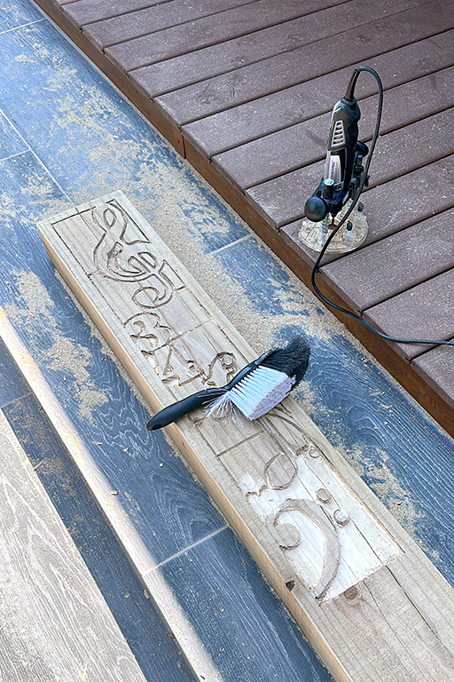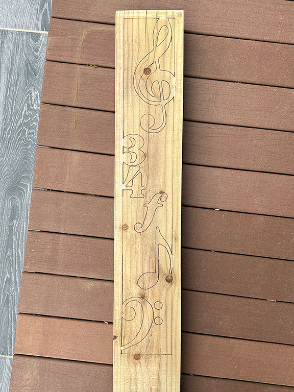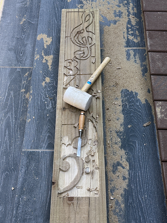 First up was a bespoke carved wood sleeper as a commemoration of 34 years of teaching music for a local music teacher on her retirement. The originally requested project inspiration was not possible given a 10-day timescale and after discussion, we settled on this design. The idea was based on a post I carved for my garden some eight years ago and renovated at the end of last month. Top tip – use the right tools. Had I stuck with an inferior routing bit, I think I would have still been hacking away. And if I am going to do another at any point, I will invest in a decent plunge router that is a little bigger than my Dremel!