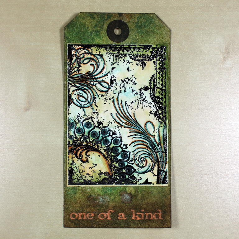I’ve got into the studio at last to do my own thing in between some craft room reconfiguration and college work! I’ve chosen to do some quick mixed media tags using mainly Ranger/Tim Holtz products:
