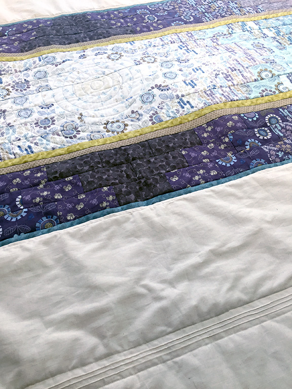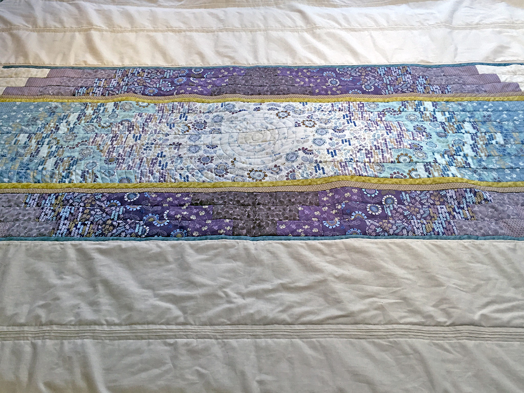 It’s the first time I have quilted using printed polycotton, and I was quite disappointed with it fading on its very first wash. Hopefully, that is it for future washes. I’ll also give you a tip – always check the ironing instructions for unfamiliar fabrics. It turns out that setting the iron to the normal temperature and steam for cotton fabrics ends with the polycotton firmly adhering to the iron and shrinking somewhat.