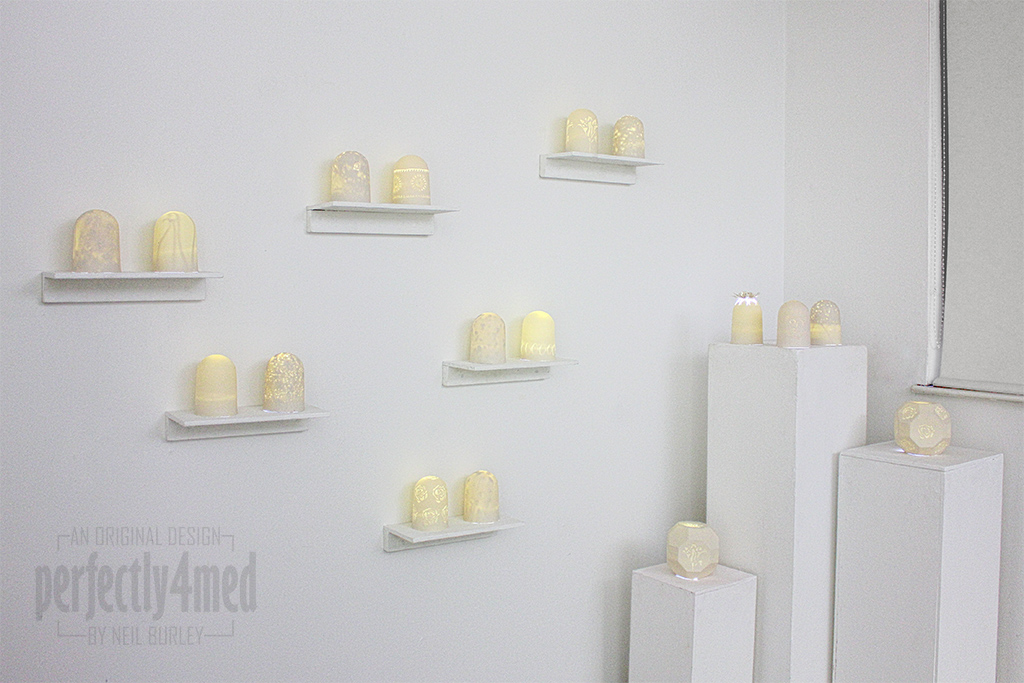 Where has two years gone? Seems to have flown by! And so, I come to the close of my course, and here are the pictures of my final exhibition. I have studio pictures of the final pieces to post as well, and they’ll come in due course. I’ve used a bit of Photoshop jiggery-pokery to get some of the detail right in the exposures, but the light level on the day was more the dome pic than the globe pic (i.e. not as dark as I’d like, but hey ho!).