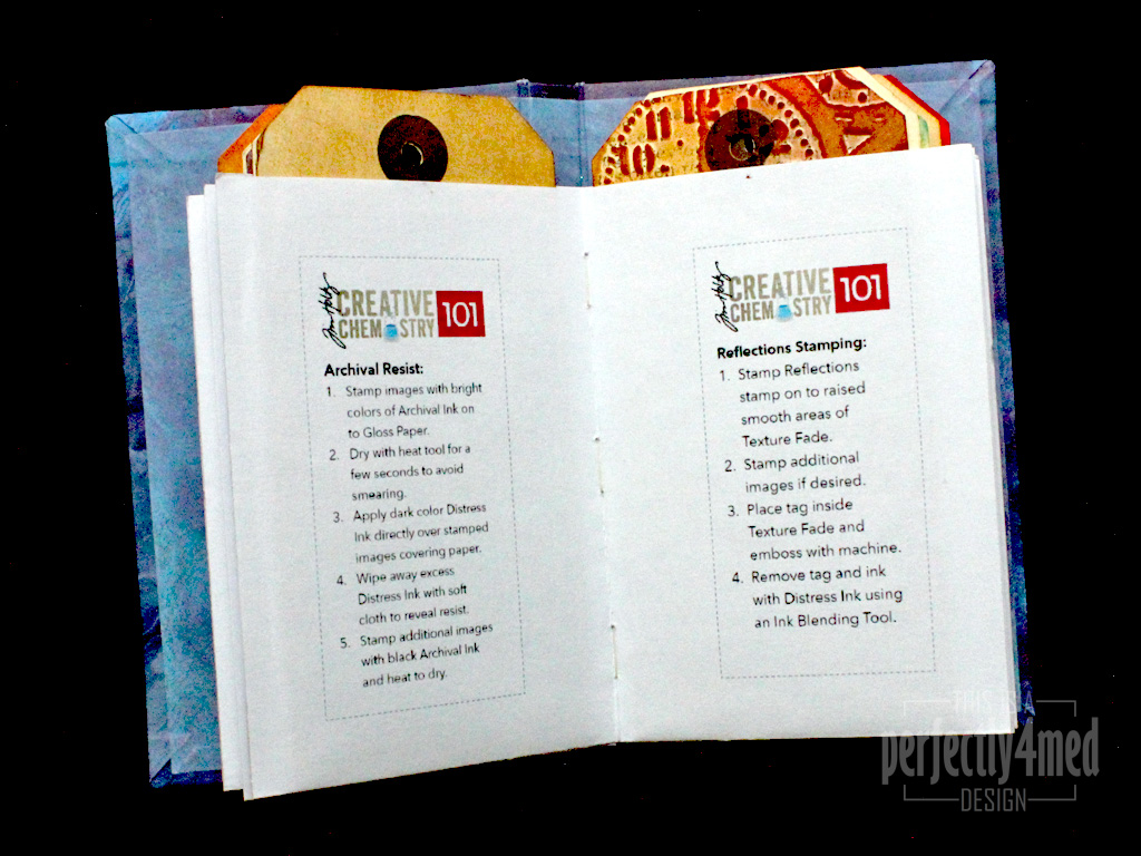I’ve snatched some ‘me’ time in the studio today and revisited some of the lessons on distress stains and markers from Creative Chemistry 101 – a staggering four years ago! It’s part of the Summer of Creative Chemistry from onlinecardclasses.com, in the lead up to the brand new Creative Chemistry 103 from Tim Holtz. These are three tags created for Week 2.