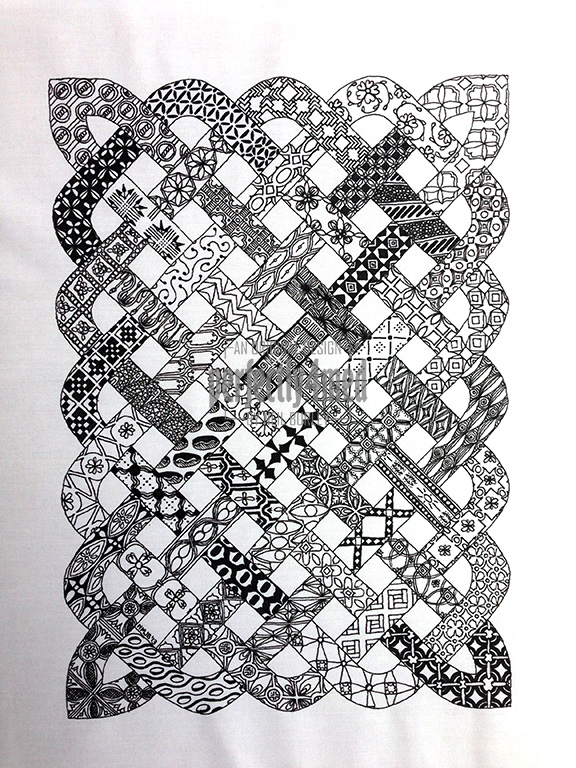 It’s not long to wait before my little corner of the blogosphere captures it’s 250,000th view. I gave you a sneak preview of my giveaway a couple of weeks ago… and here’s the whole thing! I’m giving away an A3 quilt featuring 100% cotton fabric onto which I have hand drawn and shaded tangle patterns that I’ve published on this blog, quilted with cotton/polyester wadding and then hand bound with a black fabric binding. It’s labelled on the back with my name and the fact it’s my seventh quilt.