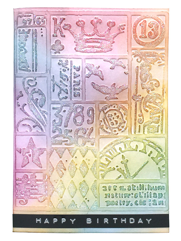 I’m finishing my makes guided by the week-long course from Online Card Classes: Extraordinary Embossing Folders. For the final day, we looked at bonus tips for using embossing folders which incorporate previous techniques with different ways of applying media.