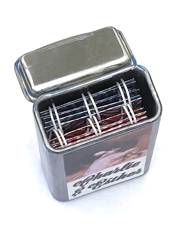 I have a penchant for sugar-free mints, especially when they are on show at the till in an Aldi. Their ‘complimints’ come in a small lidded tin, and I have often thought how suited to altered art it would be. So, this weekend I got on with altering one, upcycling it to enclose two mini-albums.